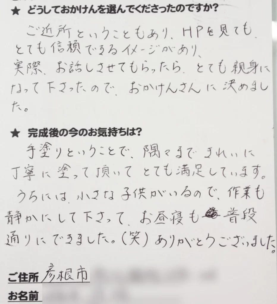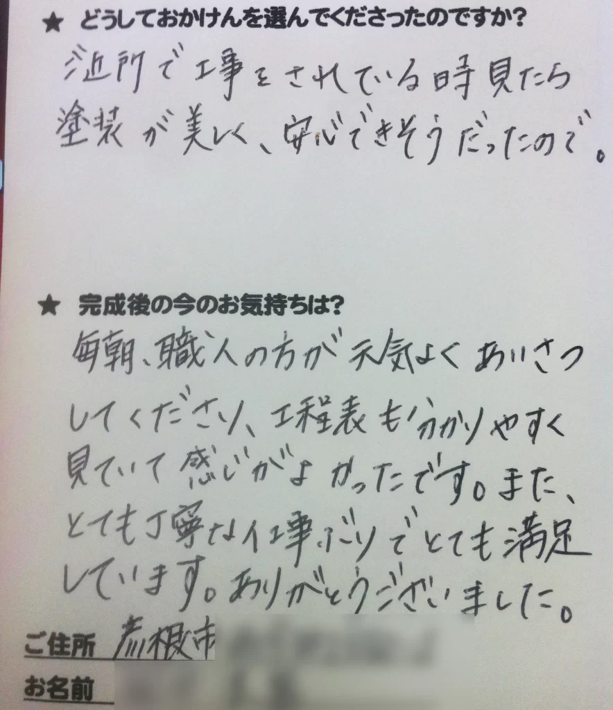 施工後のご意見をいただきまして、