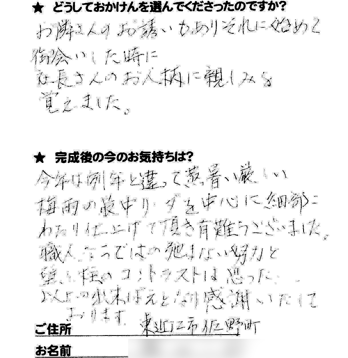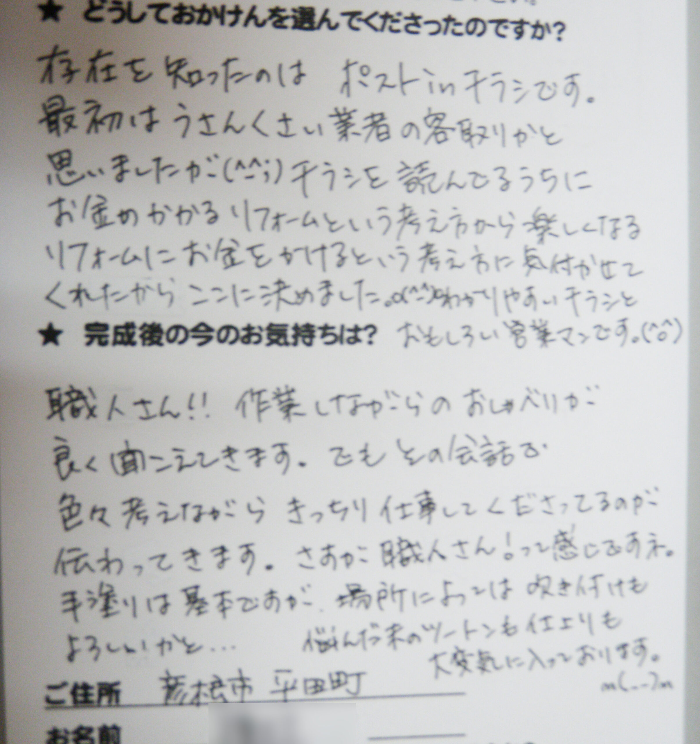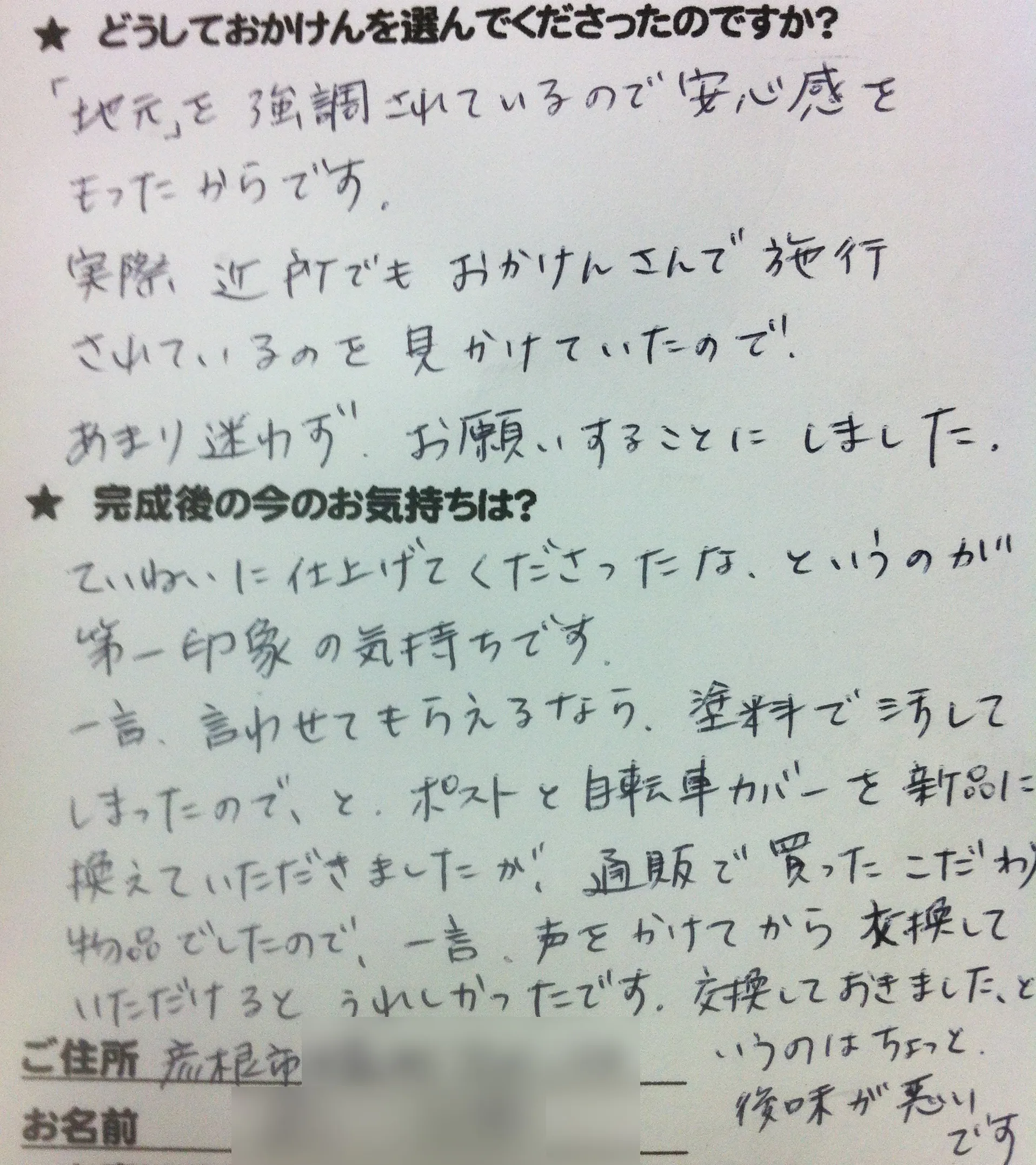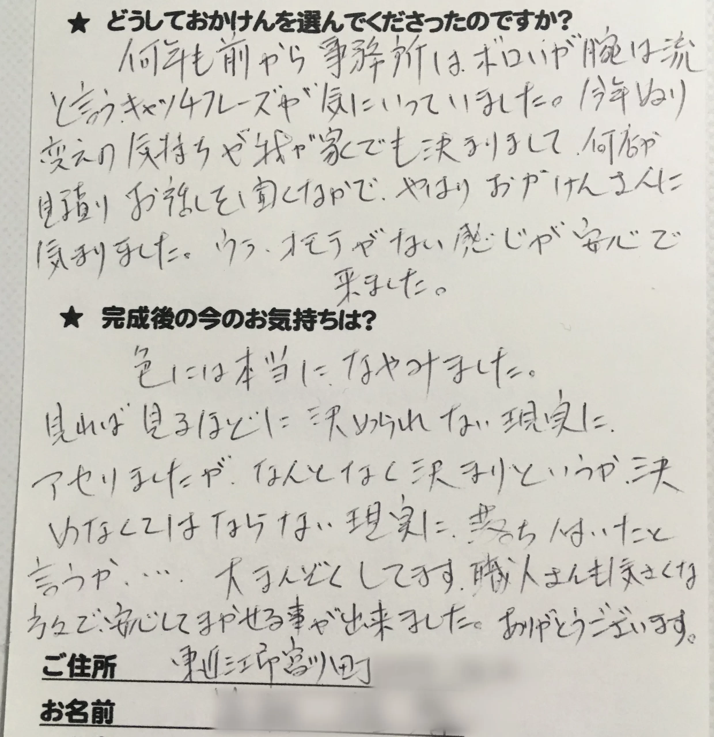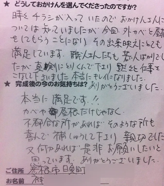 施工後のご意見をいただきまして、