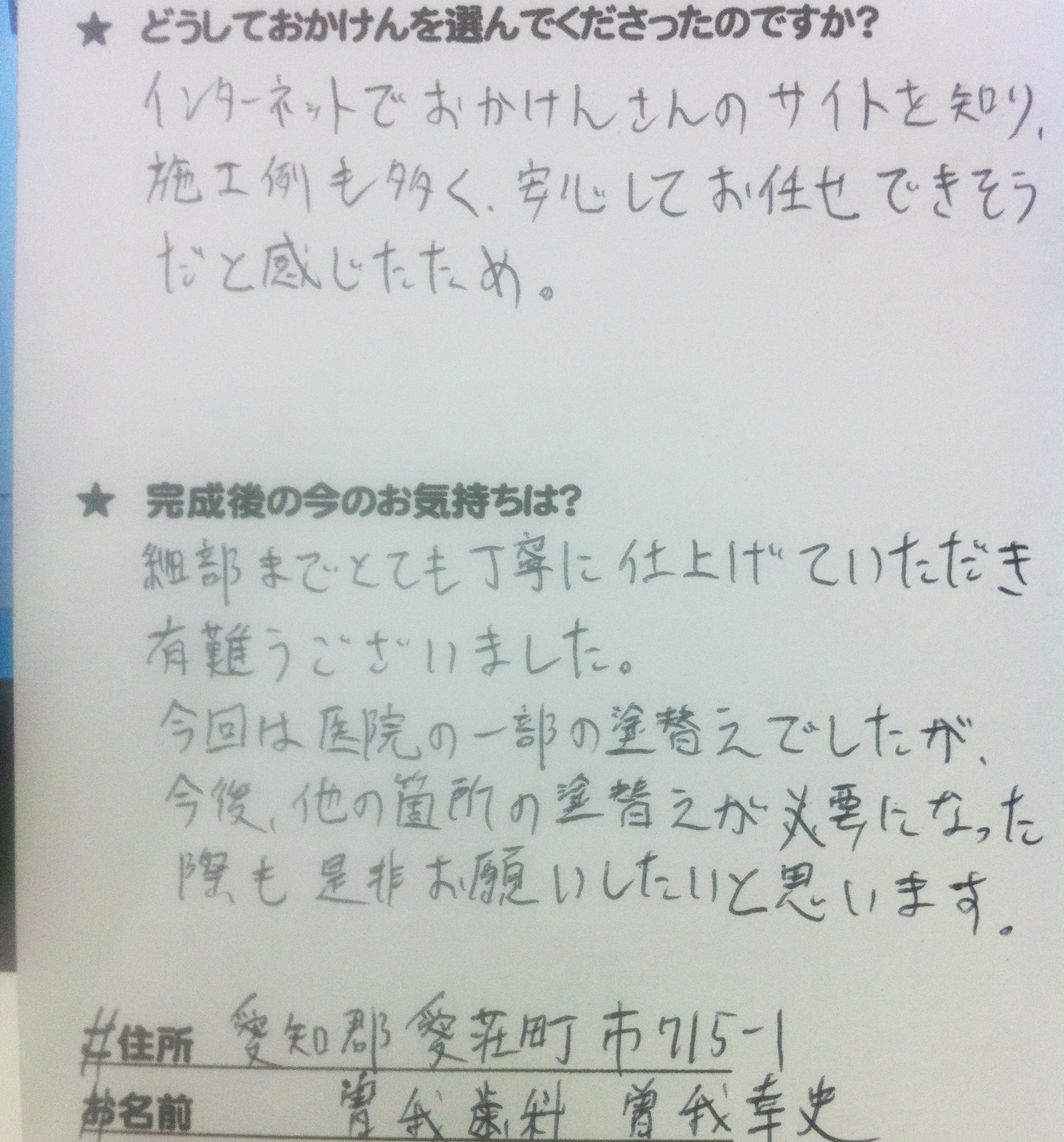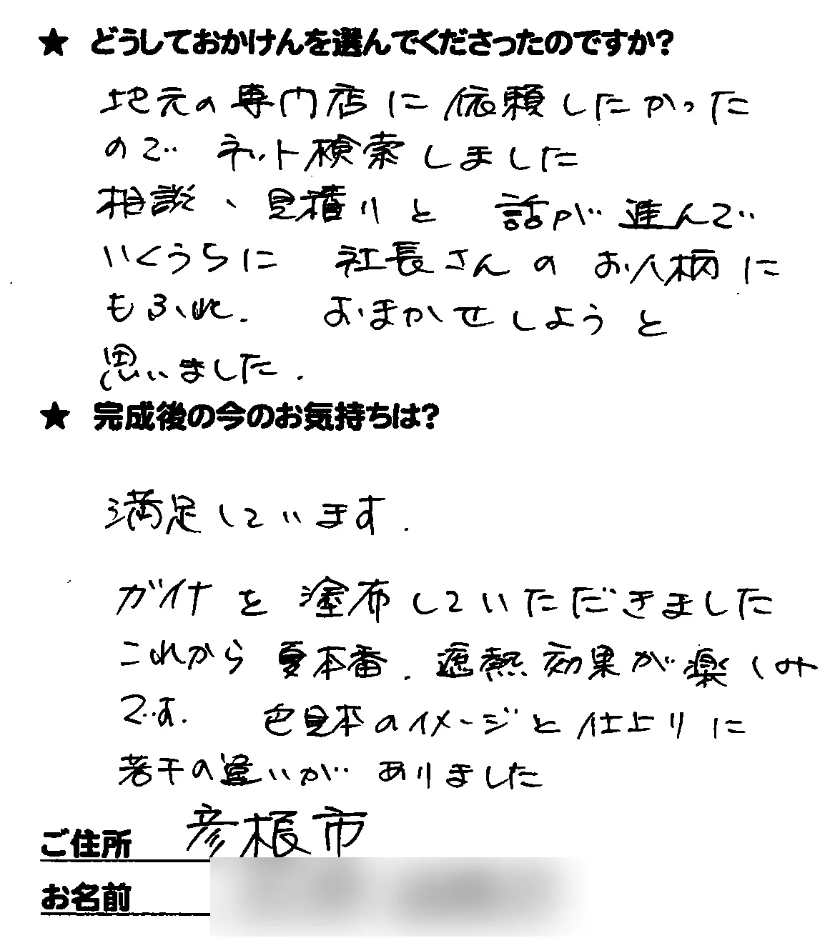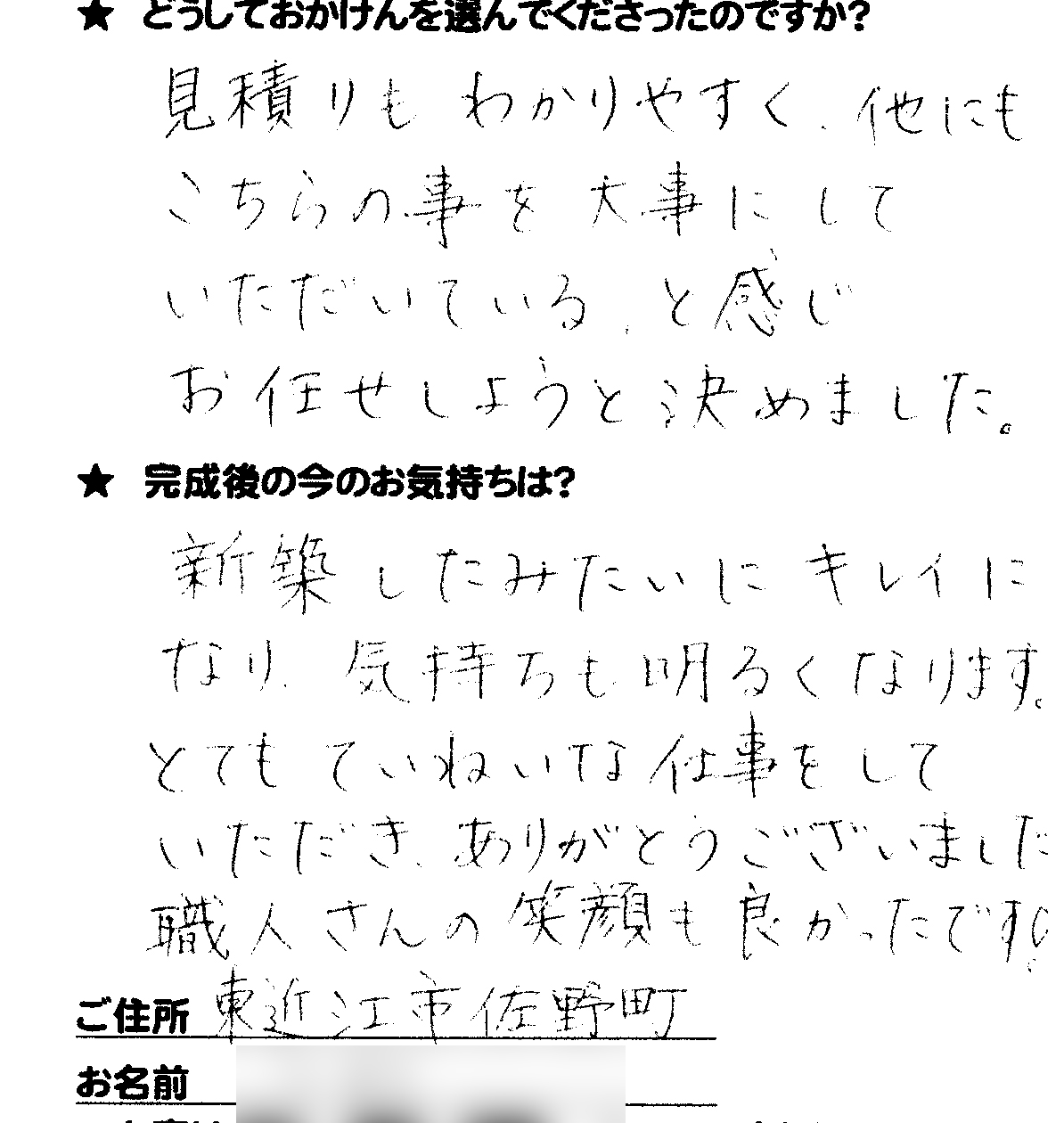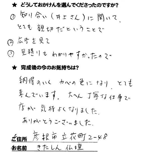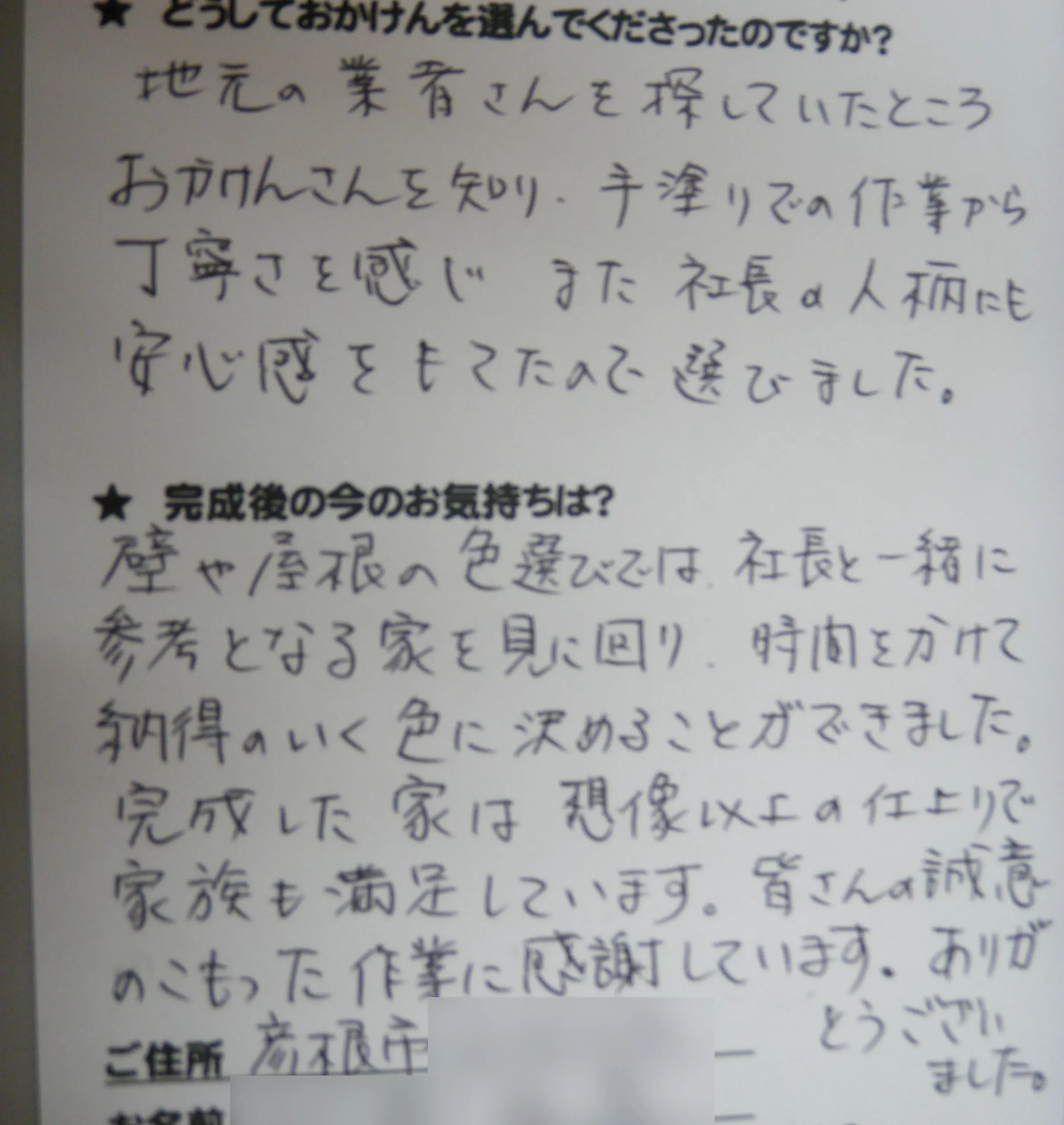 施工後のご意見をいただきまして、