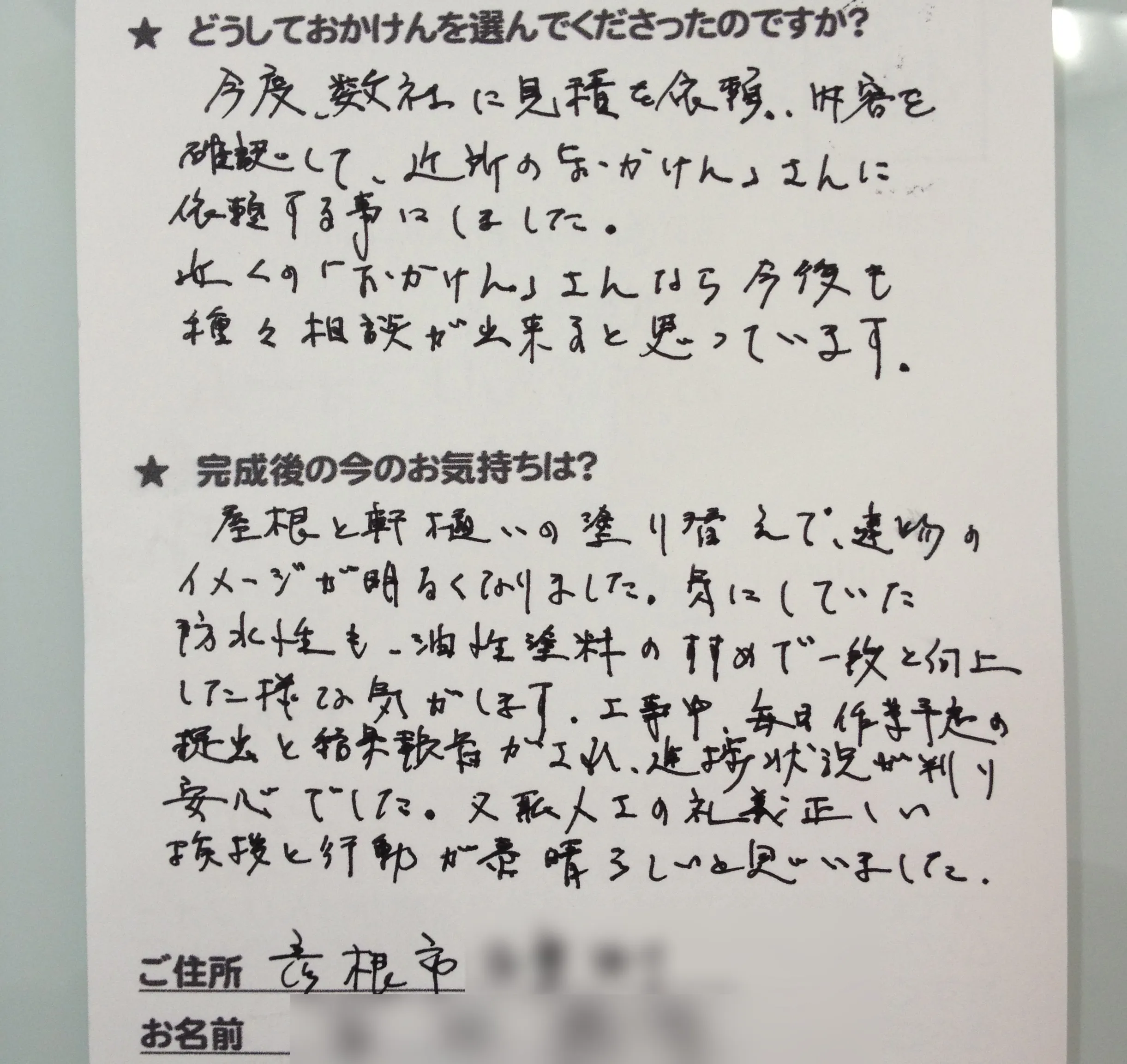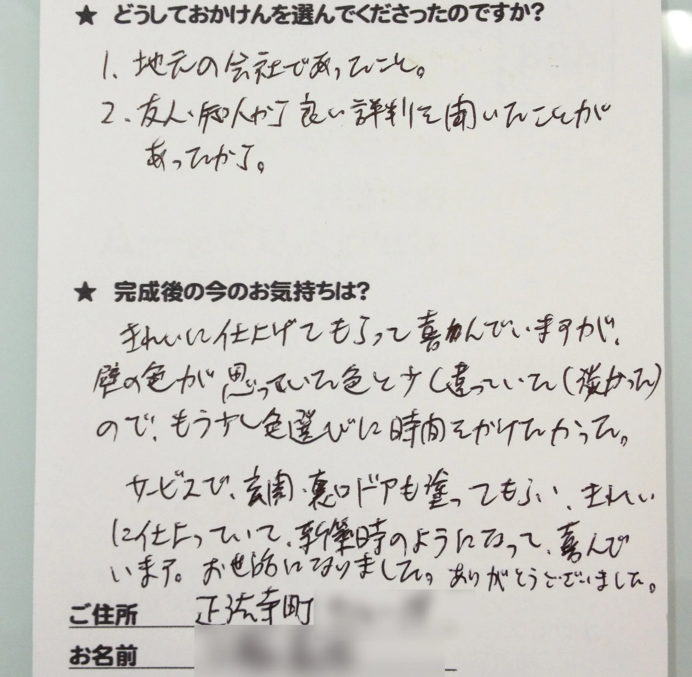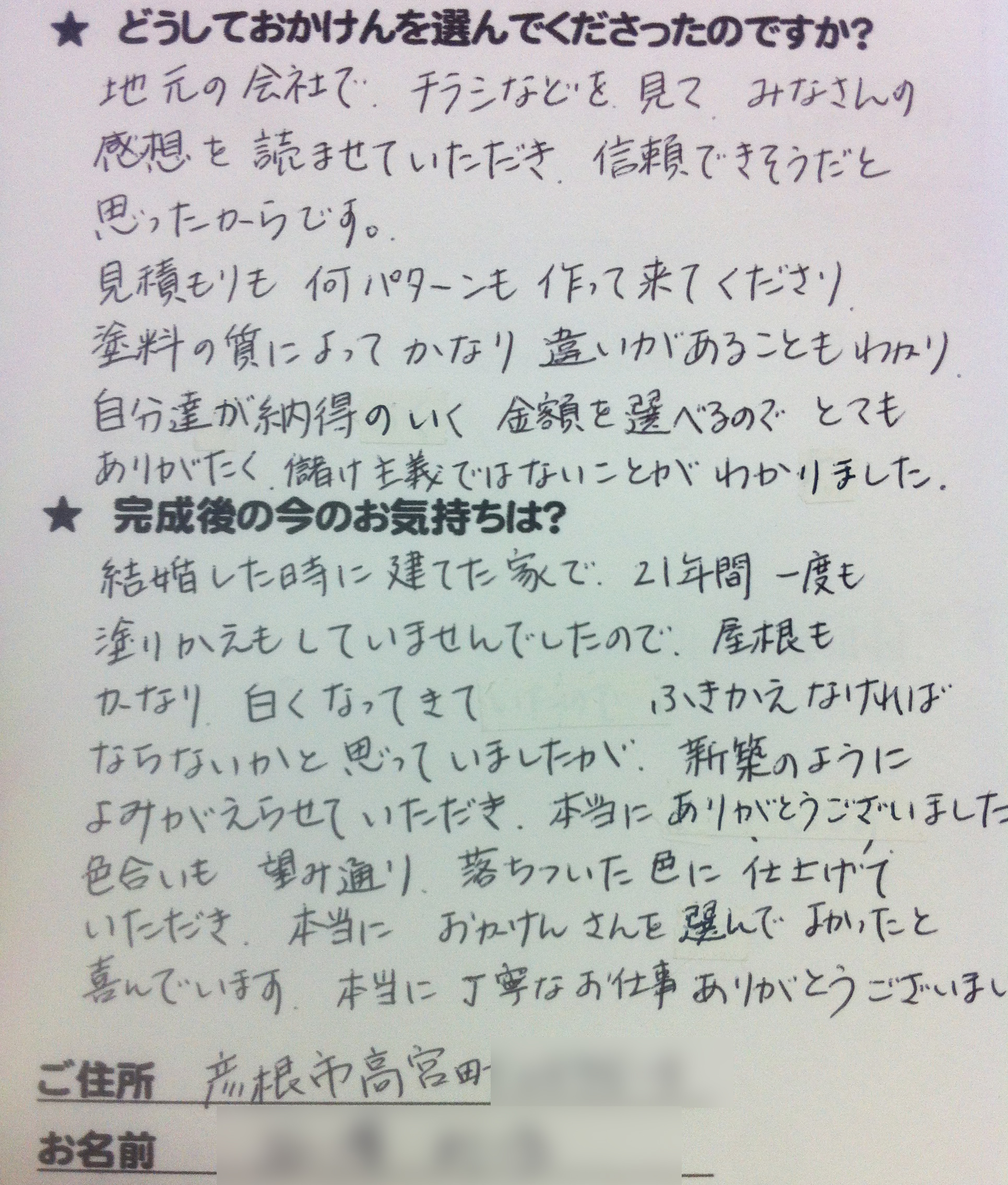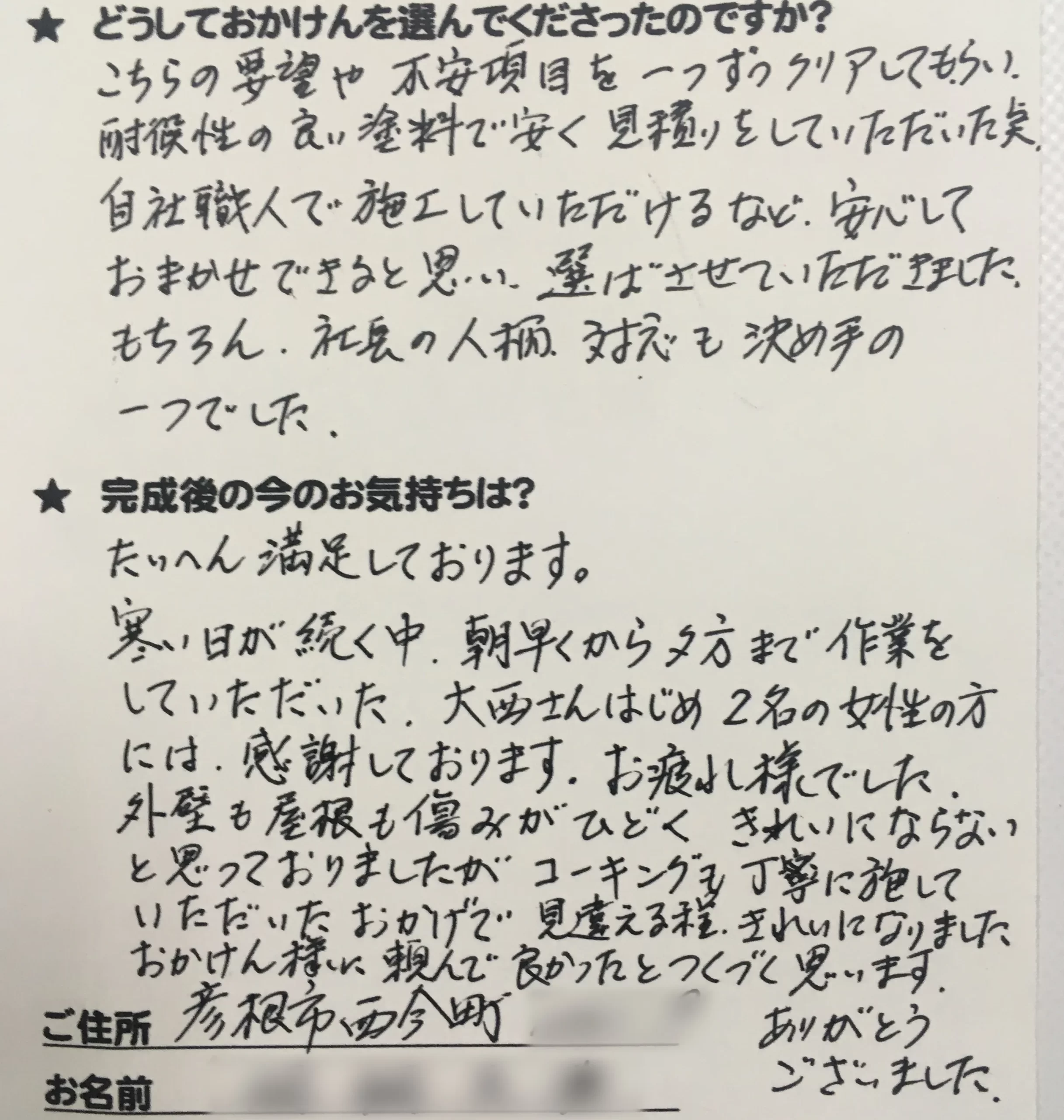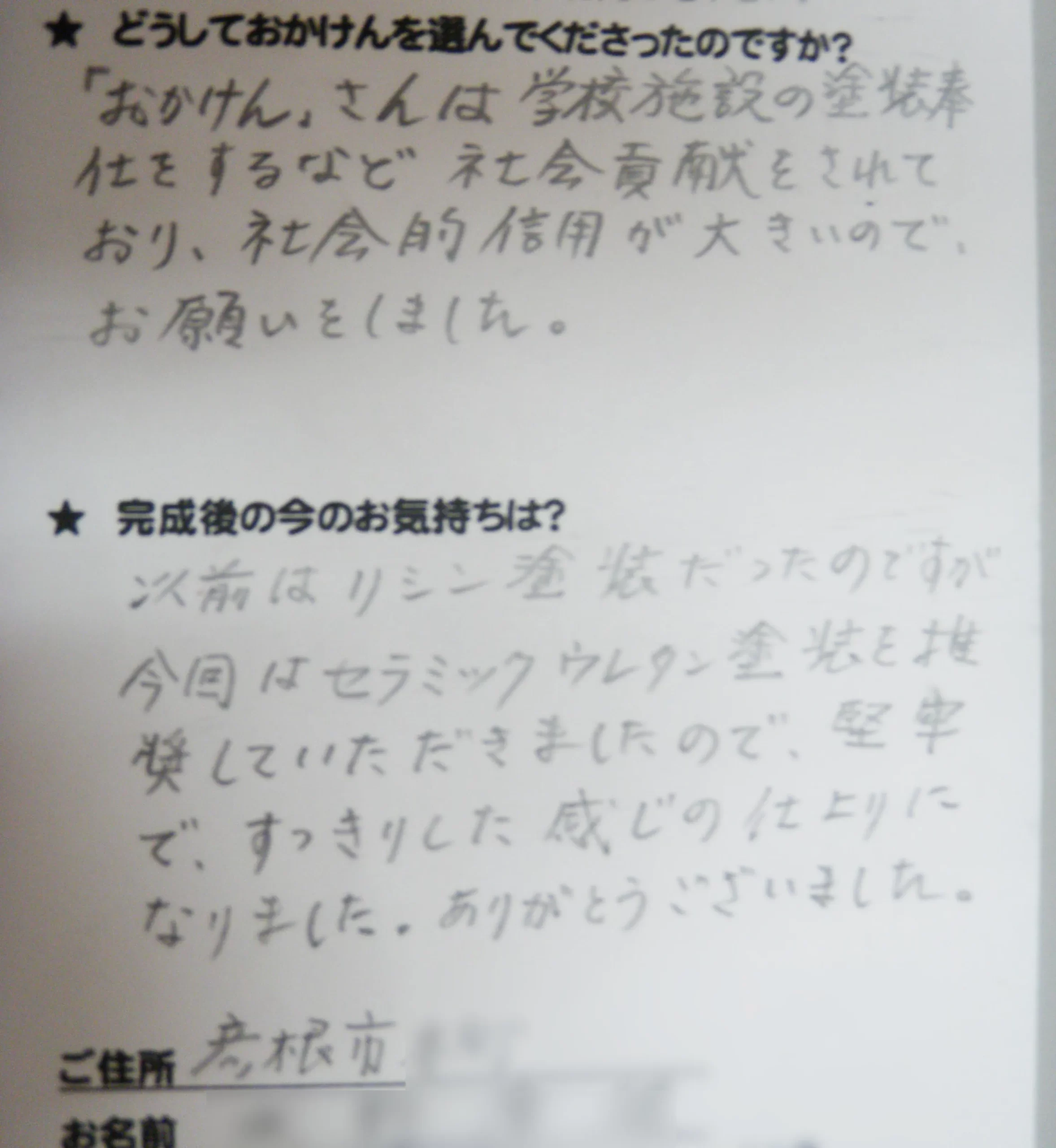施工後のご意見をいただきまして、